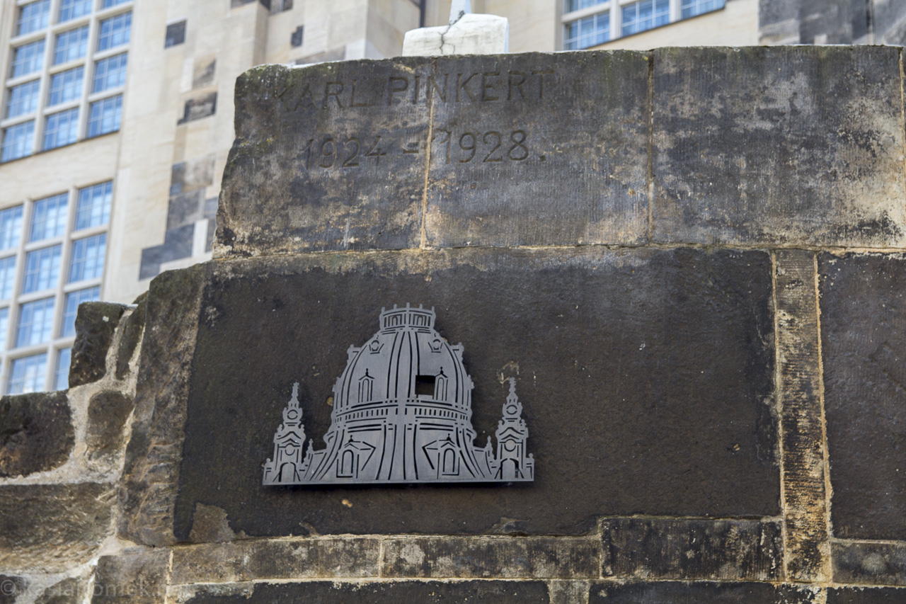 To jeden z niewykorzystanych do odbudowy fragmentów zniszczonej kopuły. Na rysunku zaznaczono, z jakiej części kopuły pochodzi. Użyte do rekonstrukcji kamienie są widocznie ciemniejsze niż nowy budulec.