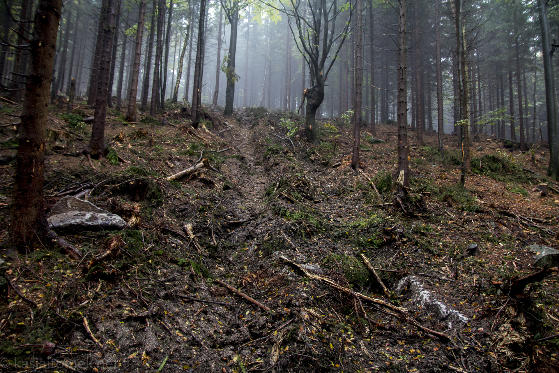 W czasie zakończonej zrywki drzew leśne maszyny uszkodziły “nawierzchnię”.